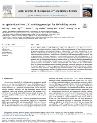 Tang L, Ying S, Li L, Biljecki F, Zhu H, Zhu Y, Yang F, Su F (2020): An application-driven LOD modeling paradigm for 3D building models. ISPRS Journal of Photogrammetry and Remote Sensing 161:194-207. 10.1016/j.isprsjprs.2020.01.019 PDF