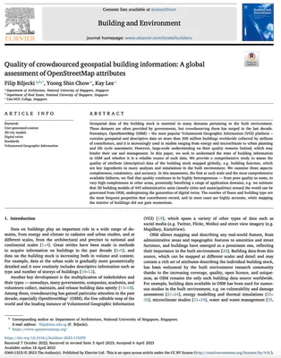 Biljecki F, Chow YS, Lee K (2023): Quality of crowdsourced geospatial building information: A global assessment of OpenStreetMap attributes. Building and Environment 237: 110295. 10.1016/j.buildenv.2023.110295 PDF