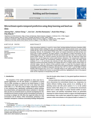 Han J, Chong A, Lim J, Ramasamy S, Wong NH, Biljecki F (2024): Microclimate spatio-temporal prediction using deep learning and land use data. Building and Environment 253: 111358. 10.1016/j.buildenv.2024.111358 PDF