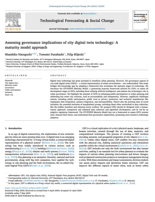 Haraguchi M, Funahashi T, Biljecki F (2024): Assessing governance implications of city digital twin technology: A maturity model approach. Technological Forecasting and Social Change 204: 123409. 10.1016/j.techfore.2024.123409 PDF