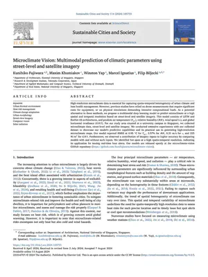 Fujiwara K, Khomiakov M, Yap W, Ignatius M, Biljecki F (2024): Microclimate Vision: Multimodal prediction of climatic parameters using street-level and satellite imagery. Sustainable Cities and Society, 114: 105733. 10.1016/j.scs.2024.105733 PDF