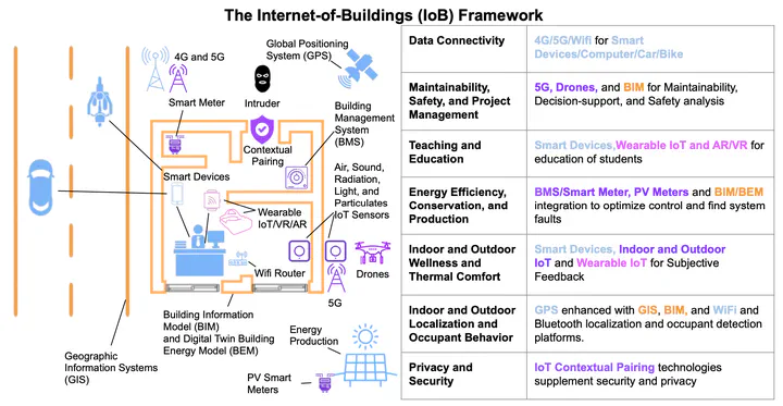 Internet-of-Things (IoT) devices in buildings and wearable technologies for occupants are quickly becoming widespread. These technologies provide copious amounts of high-quality temporal data pertaining to indoor and outdoor environmental quality, comfort, and energy consumption. However, a barrier to their use in many applications is the lack of spatial context in the built environment. Adding Building Information Models (BIM) and Geographic Information Systems (GIS) to these temporal sources unleashes potential. We call this data convergence the Internet-of-Buildings or IoB. In this paper, a digital twin case study of data intersection from various systems is outlined. Initial insights are discussed for an experiment with 17 participants that focused on the collection of occupant subjective feedback to characterize indoor comfort. The results illustrate the ability to capture data from wearables in the context of a BIM data environment.