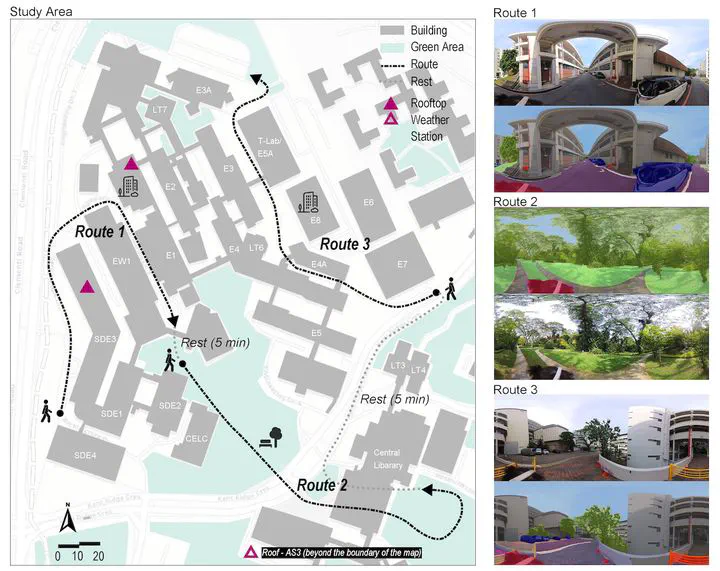 Urban environments are increasingly recognised for their potential to support psychological restoration, yet most studies assess green and grey spaces in isolation and rely on static, lab-based measures. This study introduces a multi-layered analytical framework that integrates experimental walking, momentary perception tracking, and machine learning to investigate how multisensory urban features shape restoration. Conducted on a university campus, the experiment exposed 20 participants to sequential grey–green–grey walking routes. Restoration was measured through pre/post psychometric surveys, heart rate variability (HRV), and minute-level micro-surveys during walking. Results reveal three key insights: (1) green exposure induces a short-term “inoculation effect”, with restorative benefits persisting even after re-entering grey environments; (2) visual features emerged as the most influential predictors of restoration, followed by noise and microclimate; and (3) solar irradiance — when balanced with moderate temperature and humidity — positively contributing to relaxation and stress reduction. Beyond experiments, we simulated design interventions on low-restoration scenarios using a large language model to enhance visual attributes, followed by predictive evaluation via machine learning. These simulations showed measurable improvements in predicted restoration, validating a data-driven approach for environmental optimisation. This research contributes to neurourbanism by bridging spatial sensing, physiological feedback, and AI-driven interpretation. It offers practical guidance for creating psychologically supportive urban environments — such as prioritising early green exposure and mitigating noise pollution — and introduces a replicable pipeline for evaluating restorative potential in future urban design.