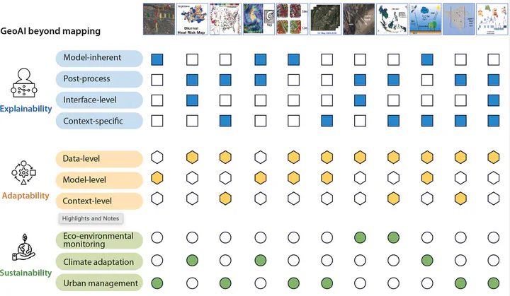 Geospatial artificial intelligence (GeoAI) is reshaping our understanding of Earth and urban systems by integrating advanced artificial intelligence techniques with diverse geospatial data and methodologies. This backstory highlights recent GeoAI advances and applications as presented in the 11 articles in the iScience special issue, “GeoAI shaping earth and cities: Advances, opportunities, and challenges.” Guest editors share perspectives on GeoAI’s advances in explainability, adaptability, and sustainability, demonstrating that GeoAI’s applications extend beyond traditional mapping functions. These 11 case studies illustrate four types of explainability, three levels of adaptability and three thematic areas of sustainability, showing the methodological diversity and practical relevance of GeoAI for Earth and urban systems. Here, interactions among these dimensions are mapped to support the evaluation and design of future GeoAI solutions. We also outline future research directions for GeoAI to address complex challenges across the sciences relating to the Earth and its cities.