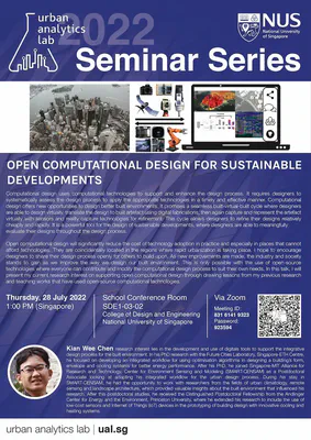 Computational design uses computational technologies to support and enhance the design process. It requires designers to systematically assess the design process to apply the appropriate technologies in a timely and effective manner. Computational design offers new opportunities to design better built environments. It promises a seamless built-virtual-built cycle where designers are able to design virtually, translate the design to built artefact using digital fabrications, then again capture and represent the artefact virtually with sensors and reality capture technologies for refinement. This cycle allows designers to refine their designs relatively cheaply and rapidly. It is a powerful tool for the design of sustainable developments, where designers are able to meaningfully evaluate their designs throughout the design process. Open computational design will significantly reduce the cost of technology adoption in practice and especially in places that cannot afford technologies. They are coincidentally located in the regions where rapid urbanization is taking place. I hope to encourage designers to share their design process openly for others to build upon. As new improvements are made, the industry and society stands to gain as we improve the way we design our built environment. This is only possible with the use of open-source technologies where everyone can contribute and modify the computational design process to suit their own needs. In this talk, I will present my current research interest on supporting open computational design through drawing lessons from my previous research and teaching works that have used open-source computational technologies.